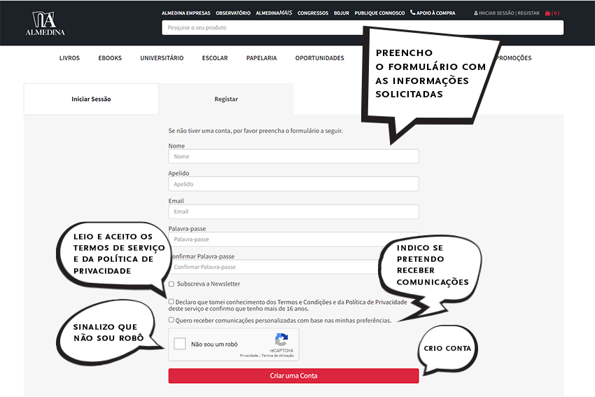 Quero criar uma conta de utilizador
